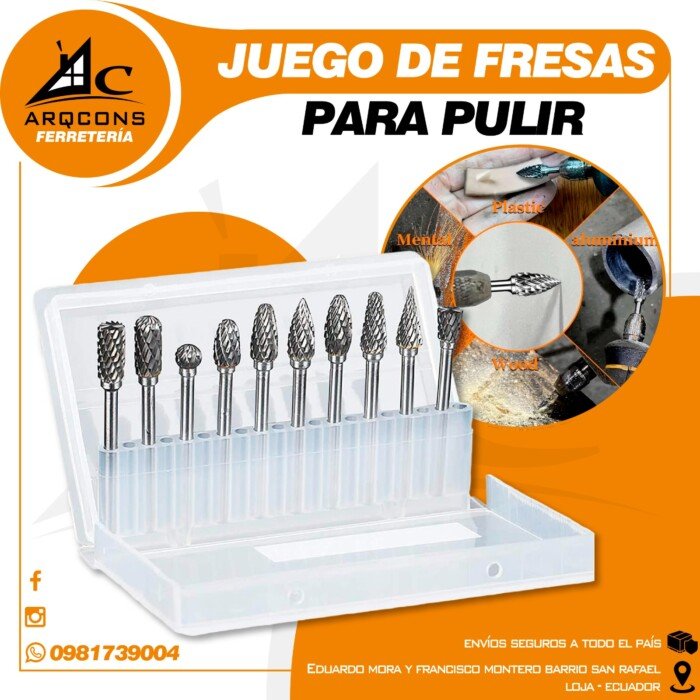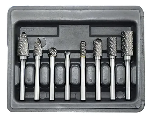 10 rebabas rotativas de carburo de tungsteno de caja de PVC blanco de 1/8 pulgadas.